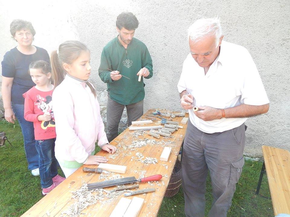 Egyesületünk népművészei kézműves foglalkozásokat tartottak. Megismertették a fazekasság, a kosárfonás, a szövés, valamint a bodzadudakészítés csinját-bínját. Kupihár János fazekasnál igen sokan jelentkeztek korongozni, örömmel dolgoztak az agyaggal. Erdélyi László fafaragó segítségével sok-sok gyermek készített bodzadudát, amit örömmel vittek haza. Erdélyi Boglárka a kézi orsón fonással bemutatózott, amit a legbátrabbak ki is próbálhattak.