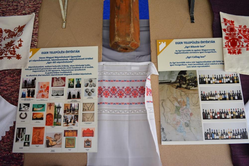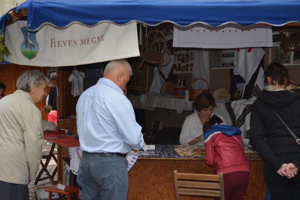A rendezvényen Heves Megye népművészetét a Heves Megyei Népművészeti Egyesület tagjainak alkotásaival képviseltük. A pavilonban Forgács Antalné, Ízer Istvánné és Fejes Mártonné hímzései kerültek kiállításra, de láthatóak voltak Baji Imréné kosárfonó alkotásai, Kelemen Andrásné szövött textiliái, Szontághné Demeter Ágnes lószőrékszerei, Tóth Lóránt fajátékai, valamint Gelsei Sándor festett bútorai.