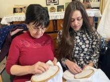 Berzeviczy-Fehér Jánosné viseletkészítő, népi iparművész, a népművészet Mestere műhelyében folytatódott a Csoóri Sándor Alap támogatásával megvalósult viseletkészítő képzés.