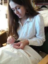 Berzeviczy-Fehér Jánosné viseletkészítő, népi iparművész, Népművészet Mestere műhelyében folytatódott a Csoóri Sándor Alap támogatásával megvalósult viseletkészítő képzés.
