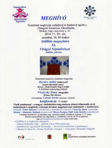 A Fügedi Márta Népművészeti Egyesület 2014. évben is meghirdettte „Virágzó népművészet” című pályázatát, immár tizenegyedik alkalommal, a hagyományteremtő rendezvényükre pályamunkákat vártak a népművészet minden szakágából. A rendezvényhez társul a; Viseld mindennap c. mini viseletkészítő konferencia, mely szól a magyar viseletkultúra hagyományos elemeit felhasználó, de új funkcióknak is megfelelő, a köznapi divatban megjelenő népi viseletekről.