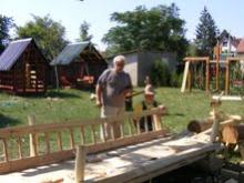A Heves Megyei Népművészeti Egyesület tagjai, az alkotó tábor mesterei szakítottak időt arra, hogy szakmájukkal is meg ismertessék a csemetéket. Kupihár János fazekas vezette a kezüket, csillogó szemmel nézték, hogyan szaladt az agyag a korongon, gyúrták, markolták, alakították, készítették a saját csodájukat. Gulyás Béla gyertyamártó segédletével pici formákba loccsantották a forró viaszt, hogy kihűlve örömmel adhassák szüleiknek a különböző színű saját készítésű gyertyákat. A foglakozás végén kórusban kiáltották: köszönjük gyertyás Béla bácsi! Tóth Lóránt fafaragó, játékkészítő rögtönzött műhelyében kicsi fa játékokat készítettek. Zümmögött a fűrész, koppant a pici kalapács, már is kész egy kis autó, szinte elrepül a madárka, lepke. A gyermekek önfeledten, saját készítésű játékaikat tolják, reptetik. Talán néhányan később ennek az élménynek hatására fogják kezükbe a faragókést, ülnek a korong, az agyag mellé és olvasszák a gyertya viaszát, hogy ők adják tovább a kézműves csodát.