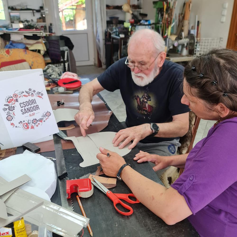 A tiszafüredi Bőrműves Alkotóházban Horváth Tibor népi iparművész, a Népművészet Mestere és Horváth Tiborné Gránátalma-díjas népi iparművész adja át tudását .