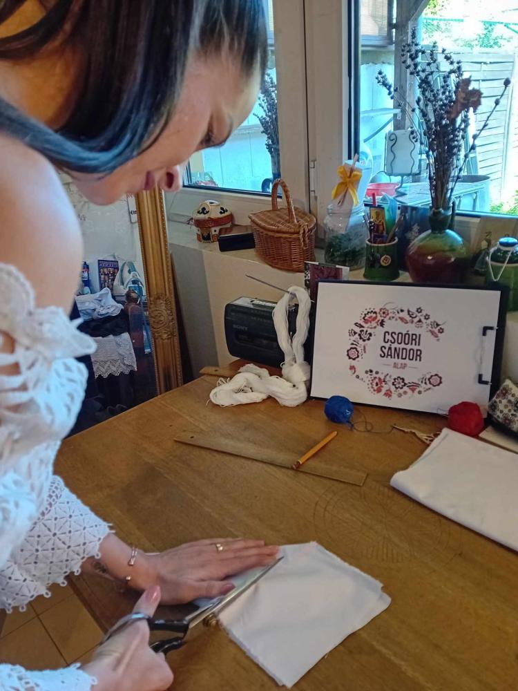 Első alkalommal kézbe vették Flórián Mária: Magyar parasztviseletek Jelenlévő Múlt című könyvét, amiben egy fiatal család ünnepi öltözetben látható az 1930-as években. Megismerkedett az alapanyagokkal, a hímző fonalakkal, kiválasztották azt a kékfestő alapanyagot, amiből a szoknya el fog készülni Nikolett méretére. Megbeszélték a részletes munkafolyamatokat és hozzá fogtak a közös munkához.