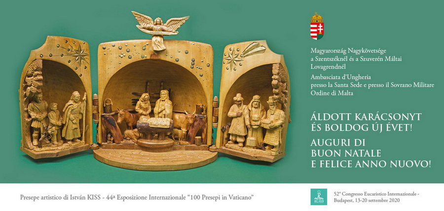 Külön elismerés, hogy Magyarország Szentszéki Nagykövetsége karácsonyi üdvözlő lapján is szerepeltette a „teknő” betlehemet.