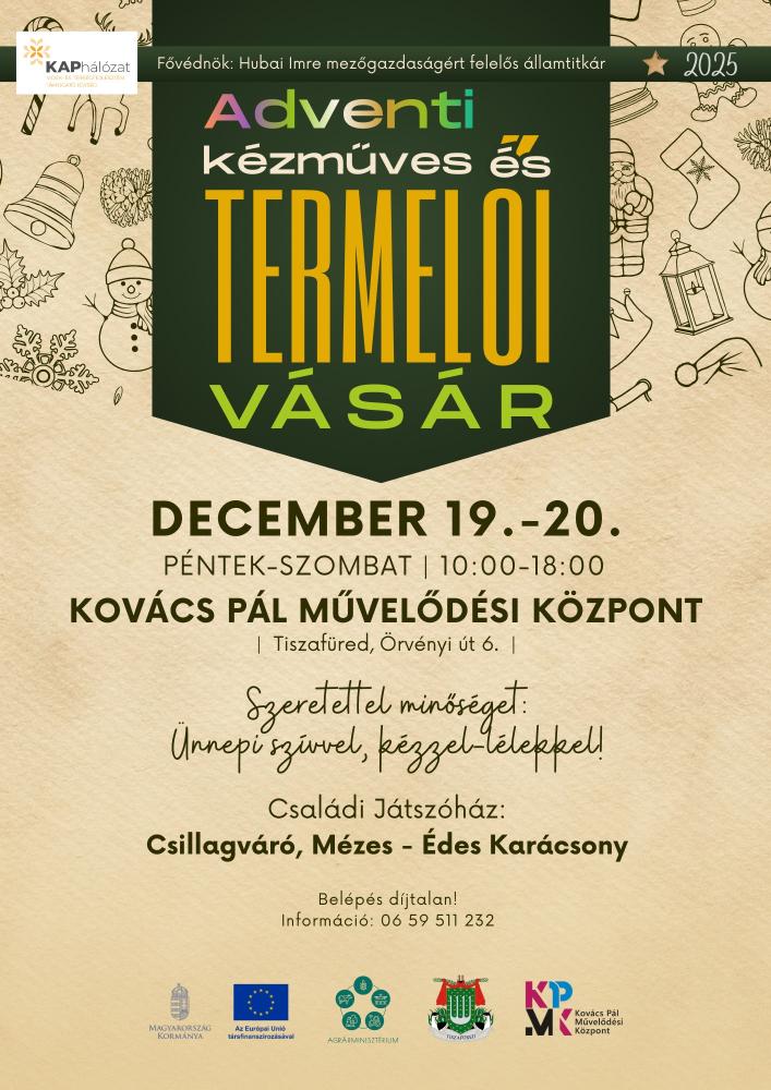 Adventi vásárt rendeztek a Kovács Pál Művelődési Központban Tiszafüreden, ahol két napon át közel húsz standnál várták az érdeklődőket és kínálták termékeiket a kézművesek, köztük egyesületünk két kiváló tagja is.