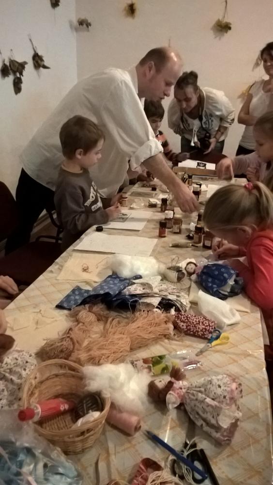 Lovászné Ritánál népi rongybabát és botbabát lehetett készíteni. A színes szalagok, mintás alapanyagok gyorsan felkeltették az érdeklődést és igazán szép darabok készültek el a szorgos kezek munkája által.
