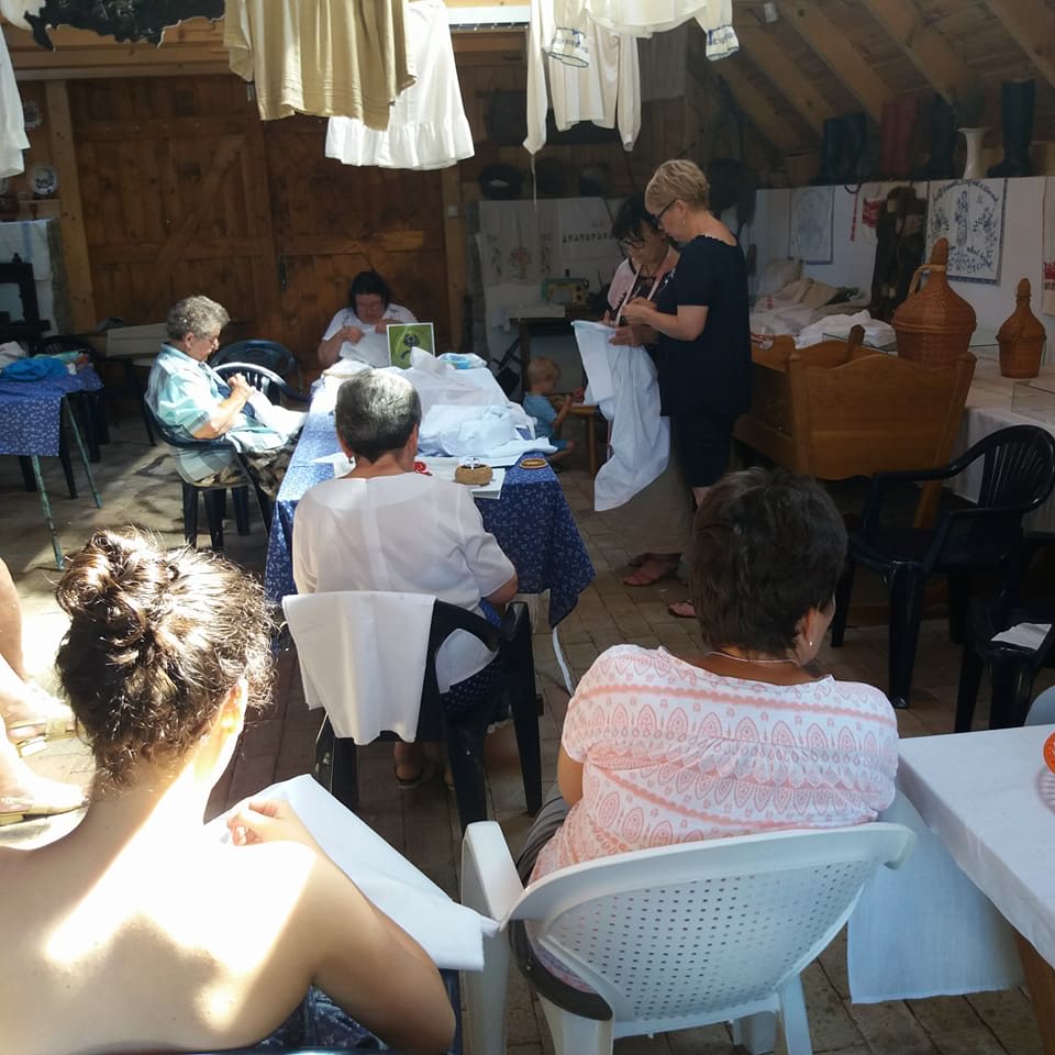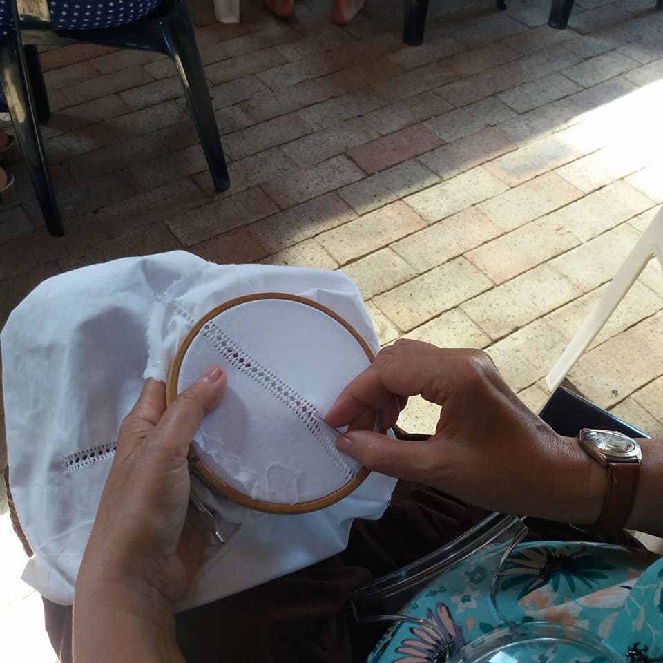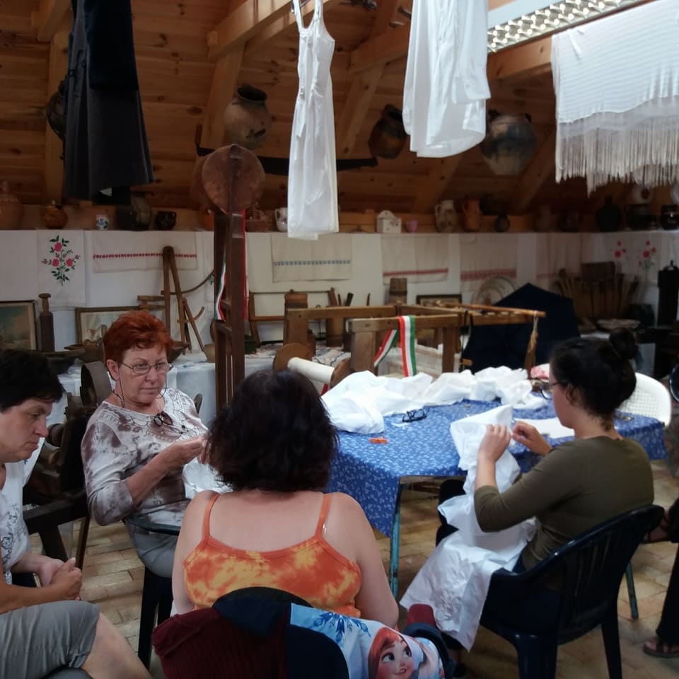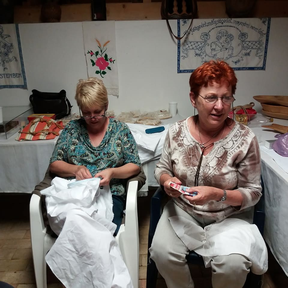 15 fő, asszonyok, leányok az ingváll kiszabása után hozzá fogtak az anyag szálának a kihúzásához. Mindenki ügyes és türelmes volt. Sosem volt még ehhez hasonló alkotásban részük.
