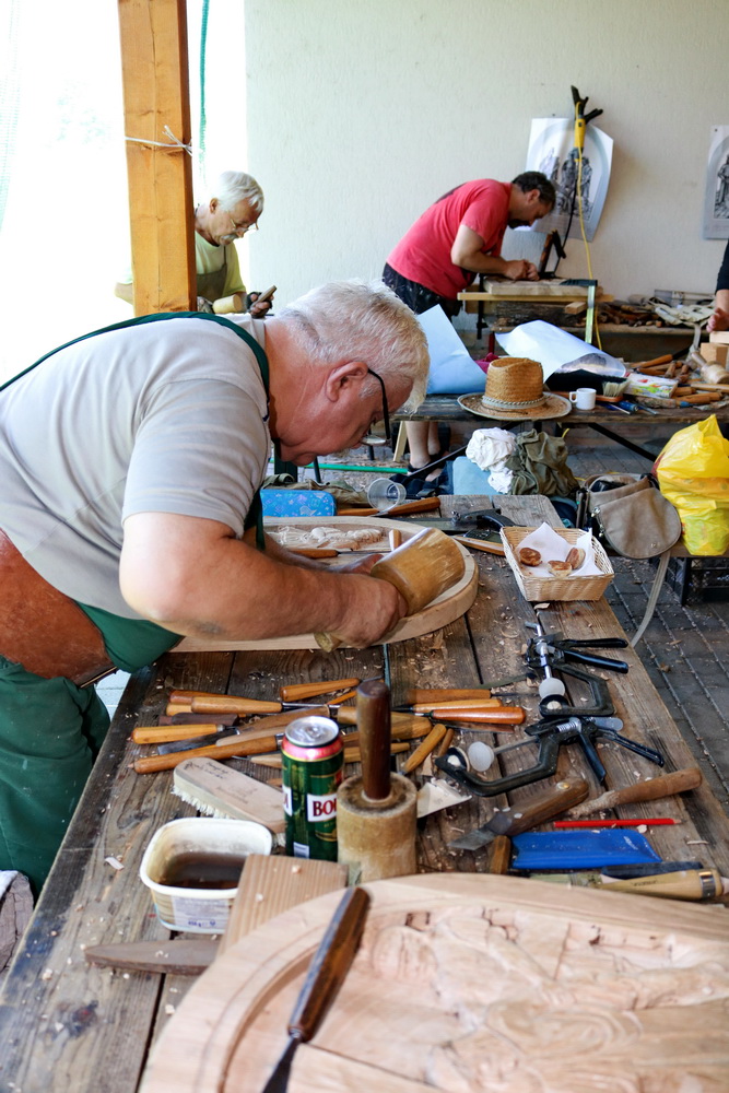 A stációkat Kiss István népi iparművész tervezte meg, a faragandó tábláktól a kőlábakig. A faragásban13 hazai és erdélyi mester vett részt. . Akad közöttük képzett faszobrász, népi iparművész, de több hosszú évek óta fafaragással foglalkozó amatőr alkotó is, akik alkotói szabadságukat a gondos tervezés mellett is érvényre tudják juttatni. Mint egyikük elmondta „a tábor nem csak arról szól, hogy összegyűltünk és faragunk valamit, hanem összegyűltünk és összeadjuk azt, amit tudunk és elkérjük másiktól azt, amit nem tudunk. Nagyon sokat tanulunk.”