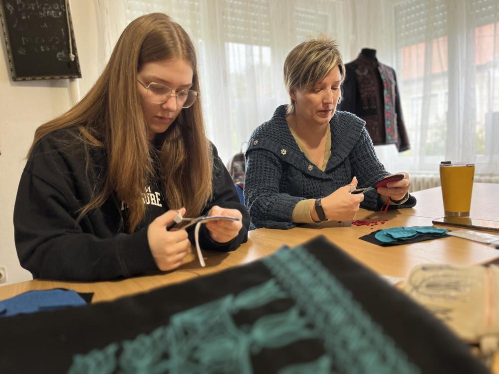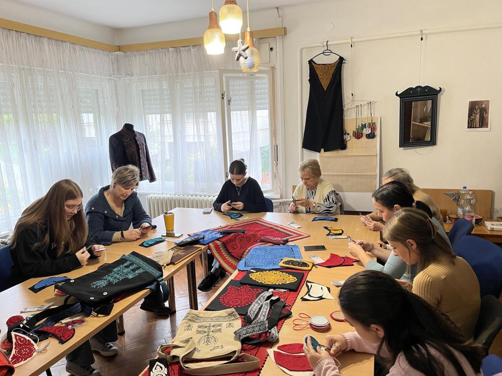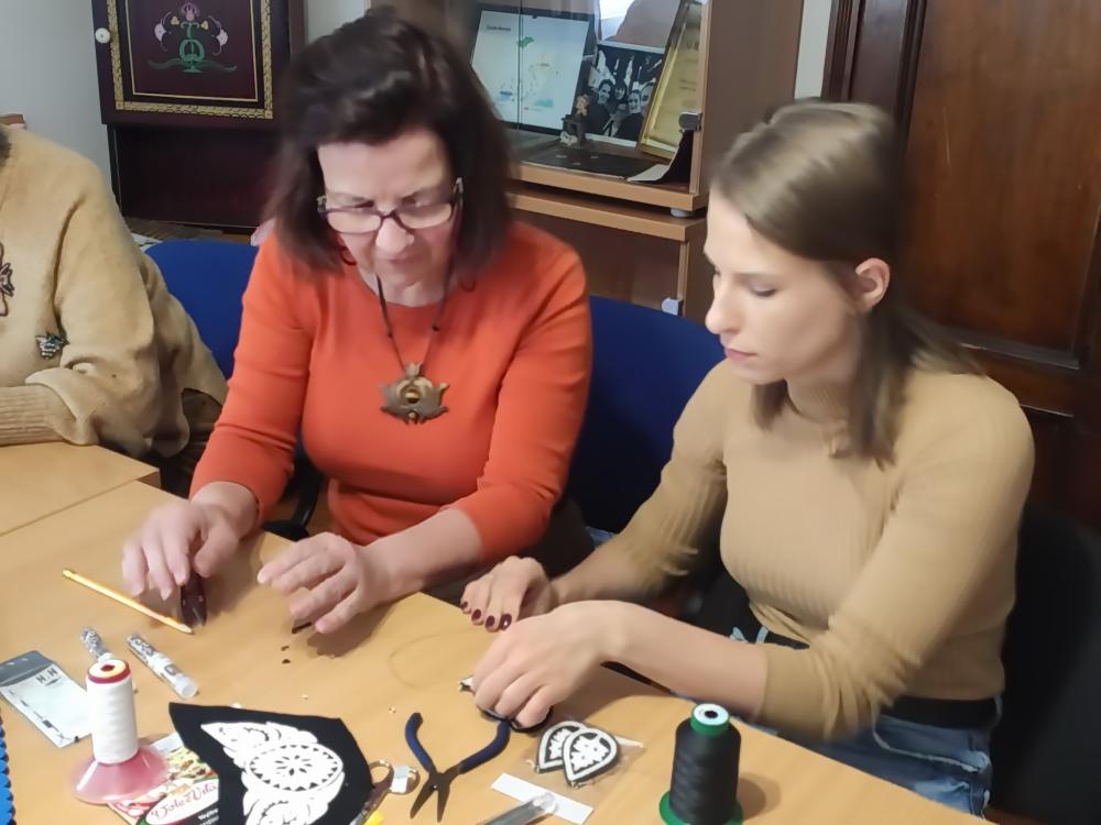 Torba Ildikó szűrrátét készítő népi iparművész a Barkó Kézműves Egyesület meghívására Ózdon tartott kézműves foglalkozást október végén. A Művésztanya a Hagyományok Háza hálózati programjának keretében fontosnak tartja, hogy új mesterségekkel ismerkedjenek meg a tagjai. Ildikó egy mini kiállítás keretében mutatta be néhány munkáját, szűrrátétes ruhákat, ékszereket és táskákat, mesélt a szűrről, szűrrátétről. A gyakorlati foglalkozás keretében pedig mindenki elkészítette a saját nyakékét, fülbevalóját és akasztós díszét is. A csendes, elmélyült munka után színes, látványos ékszerekkel távoztak a program boldog résztvevői.
