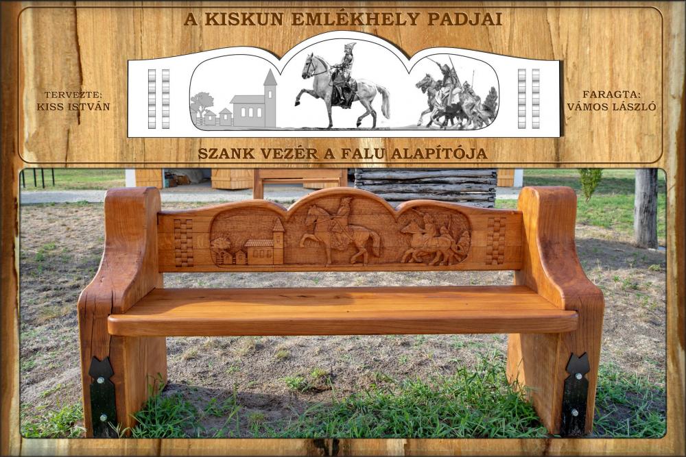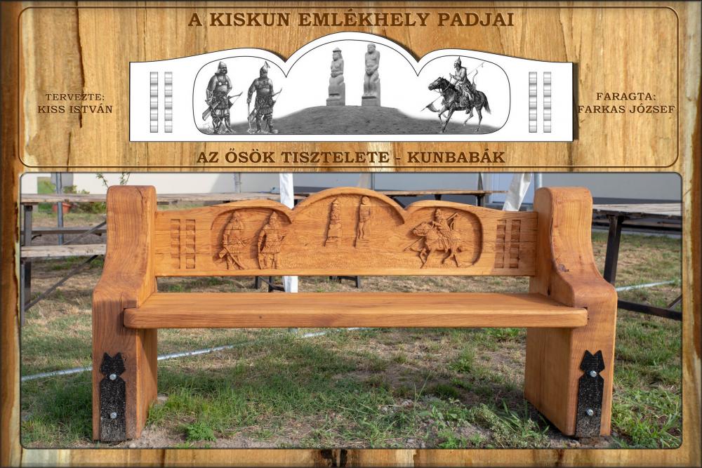 A tervek szerint a padok háttámlája került faragásra. Ezek a domborművek a kunság történetéből mesélnek el egy-egy fejezetet. A tábor munkájában részt egyesületünkből: Balatoni Tibor, Varga Csaba, Farkas József, Barta Zsolt és Kiss István. A munkába bekacsolódott Figura László, Vámos László, Kányádi Béla, Király Ferenc , Nagy András és Varga Ferenc. A az alapanyagok szabásában nagy segítségünkre voltak Varga Imre, Lovas István és Törőcsik Zoltán. A padok ünnepélyes átadására 2021. július 30-án került sor a Kiskun Emlékhelyen, Szankon.